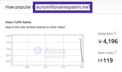 Judging from Alexa’s traffic rank, euromillionairesystem.me is getting quite a lot of traffic: