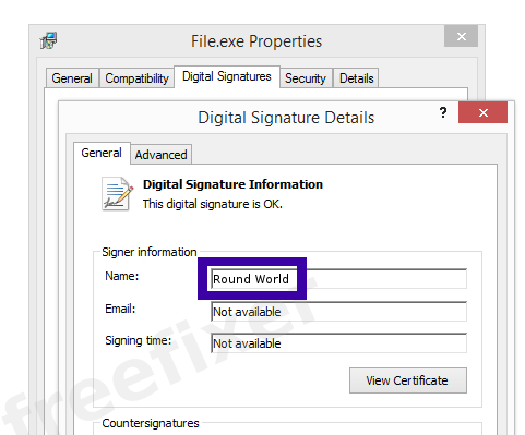 As you can see in the screenshot above, Windows reports that "This digital signature is OK". This implies that the file has been published by Round World and that the file has not been tampered with.